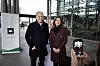 Finansminister Trygve Slagsvold Vedum (Sp) og skattedirektør Nina Schanke Funnemark tok seg en tur ut i morgenrushet for å snakke med folk om skattefradrag.