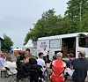 Rune Reite er svært smigret over at en engasjert badstueforening i Tyskland oppkalte seg etter han. Her vinker han glad foran saunabilen.Foto: Oslo Badstuforening