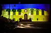 Her blir den russiske ambassaden lyssatt med de ukrainske fargene.Foto: Direct Action Theatre og ProjektorPøblene