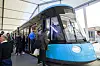 Avduking av Oslos nye trikk på rådhusplassen. En 18 meter lang modell av Oslos nye trikk avduket.Foto: Berit Roald / NTB