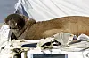 Hvalrossen Freya har lagt seg på en båt i Frognerkilen.Foto: Tor Erik Schrøder / NTB