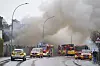 Det var kraftig røykutvikling da det mandag brant i gymsalen på Lambertseter videregående skole.Foto: Terje Pedersen/NTB
