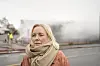 Rektor Kathrine Reine foran Lambertseter videregående skole litt tidligere i dag under slukkingen av brannen.Foto: Terje Pedersen/NTB