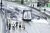 Operasjonsleder Vidar Pedersen i Oslo politidistrikt opplyser til Avisa Oslo at flere kjøretøy tok fyr etter at kvaen i lastebilen rant ut som en slags «elv».