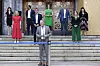 Byrådsleder Raymond Johansen presenterte torsdag sitt nye byråd. På trappa bak står (f.v.) byråd for arbeid, integrering og sosiale tjenester Rina Mariann Hansen (Ap), byråd for oppvekst og kunnskap Inga Marte Thorkildsen (SV), byråd for kultur, idrett og frivillighet Omar Samy Gamal (SV), byråd for finans Einar Wilhelmsen (MDG), byråd for byutvikling Hanna Marcussen (MDG), byråd for eldre, helse og innbyggertjenester Robert Steen, byråd for miljø og samferdsel Sirin Stav (MDG, ny) og byråd for næring og eierskap Victoria Marie Evensen (Ap).Hanna Johre / NTB