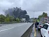 Lastebilen står i vestgående retning ved Bryn senter, noen kilometer fra Oslo sentrum. Trafikken ble sperret i begge retninger, og politiet varsler at brannforløpet vil bli langvarig.