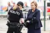Politiet sjekker veska til stortingsrepresentant Rigmor Aasrud (Ap) når hun kommer til sørgegudstjenesten i Oslo domkirke etter angrepet i Oslo natt til lørdag. To personer ble drept og 21 personer skadet da en mann løsnet skudd mot utesteder i Oslo sentrum. Foto: Javad Parsa / NTB