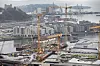 Før det nye Munchmuseet reiste seg i all sin grå velde satte heisekranene farge på utsikten fra Oslo Plaza mot de grå nybyggene på Sørenga. Bildet er tatt i 2016.