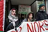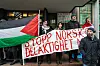 annet å lese på plakatene demonstrantene holder opp. Flere av aksjonistene har sultestreiket i ni dager, opplyser Aksjonsgruppa for Palestina i en pressemelding.