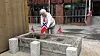 En av rullatorkjørerne, Anne på 94 år, bidro til festen ved å pynte med flagg i høybedene. Til våren blir disse fulle av urter, blomster og grønnsaker i regi av beboere i høyblokka og Sagene frivilligsentral.