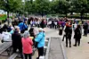 Under åpningen demonstrerte eldre beboere i den kommunale høyblokka, som er nærmeste nabo, rullatorkjøring i den nye løypa på plassen.